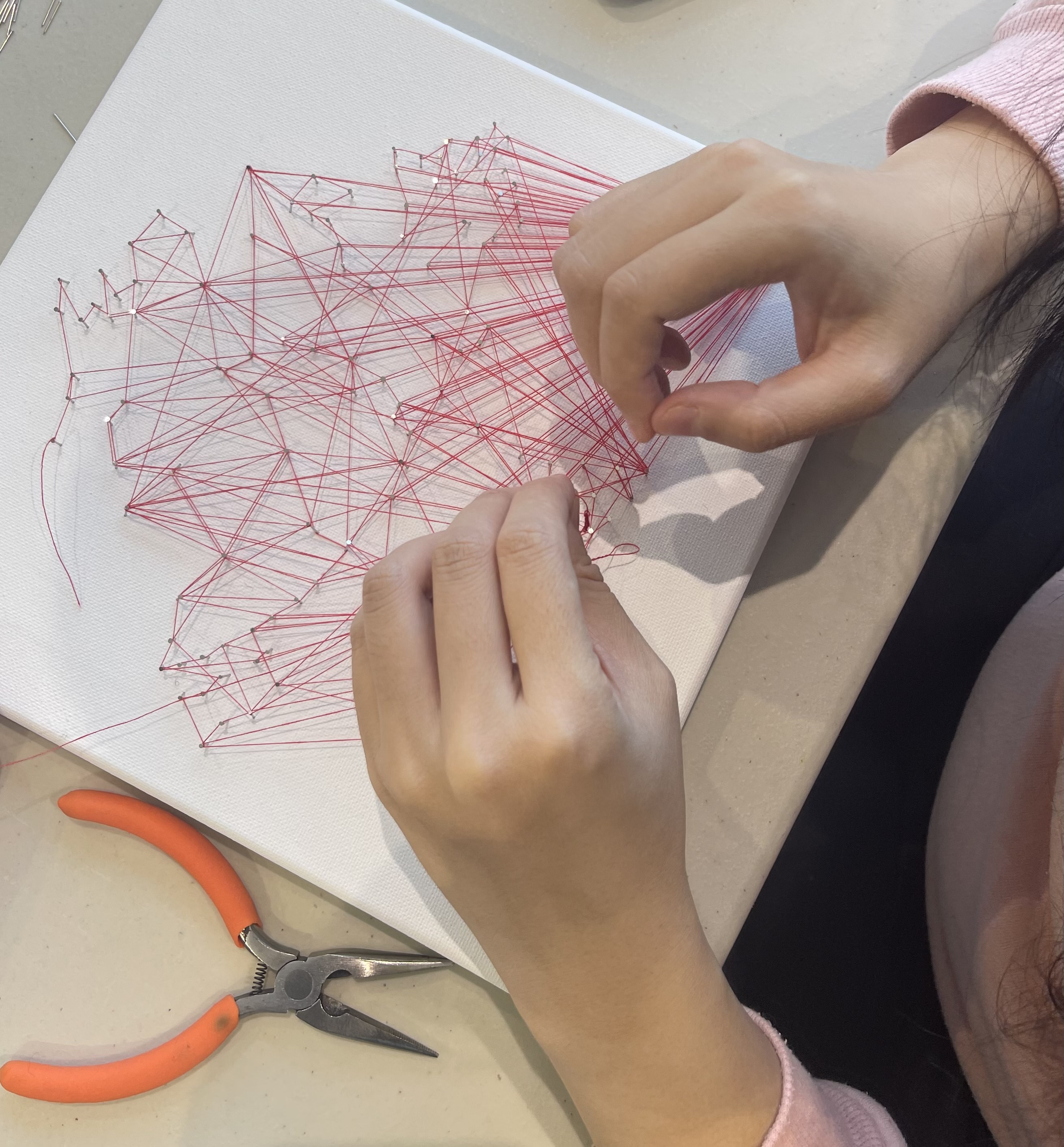 On Saturday, October 25th, 2025 from 3:00 – 5:00 pm, CICA Vancouver will host a Creative Learner Workshop with a guided gallery visit. This event aims to provide opportunities for participants to learn about the cultural references and traditions in threadwork, understand the laborious process behind artist Xiangmei Su’s piece currently on display, and experience art making using a unique thread and pin technique.