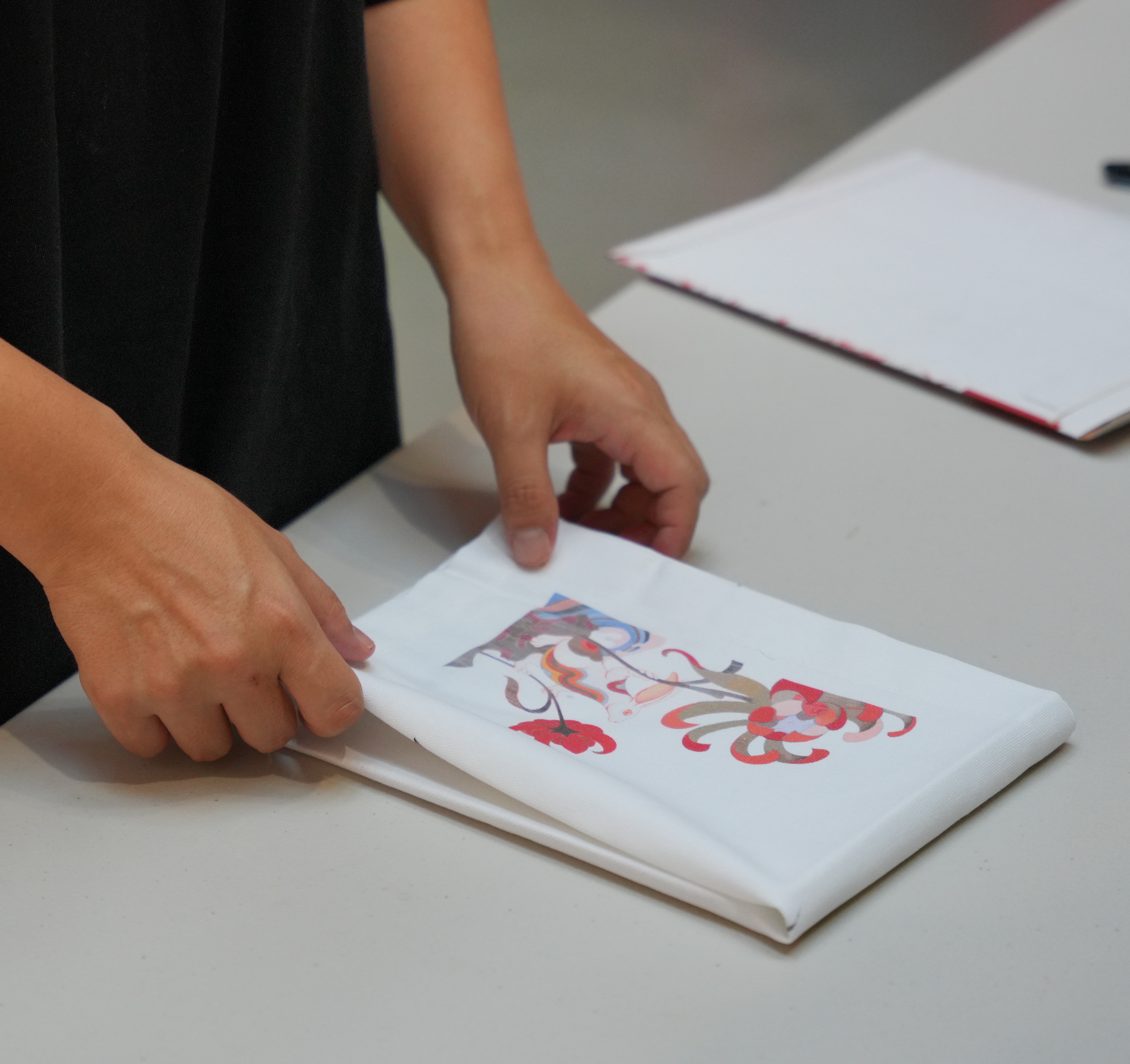 James Jean is embroidered on the bottom right hand corner of the napkin.